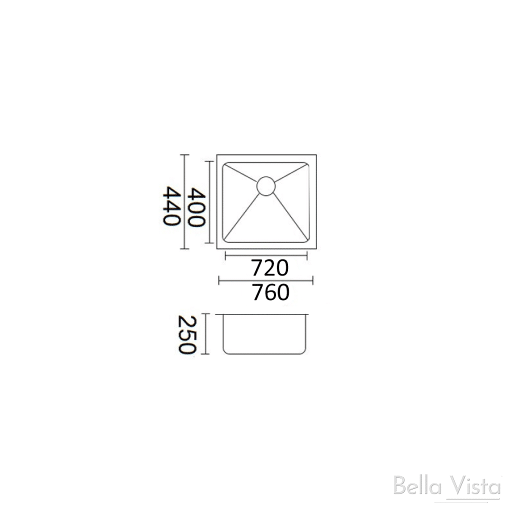 Bella Vista – Luminare Sink 760 x 440mm – Single Bowl – Stainless Steel