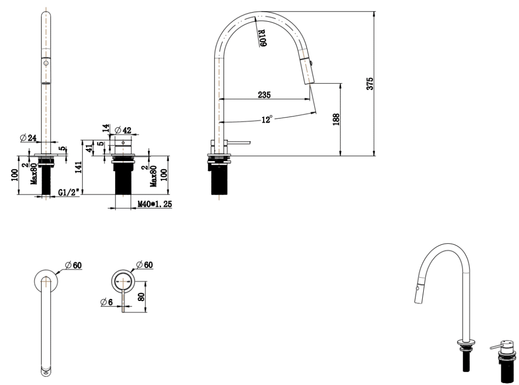 Bella Vista Mica Pull-Out Hob Mixer Set – Black