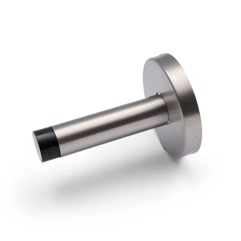 With its wall mount design, our straight door stop has an added base plate for both aesthetics and rigidity. This stylish piece is an ideal door stop for wherever a wall mounted solution is required. Includes rubber stopper to protect the face of the door.