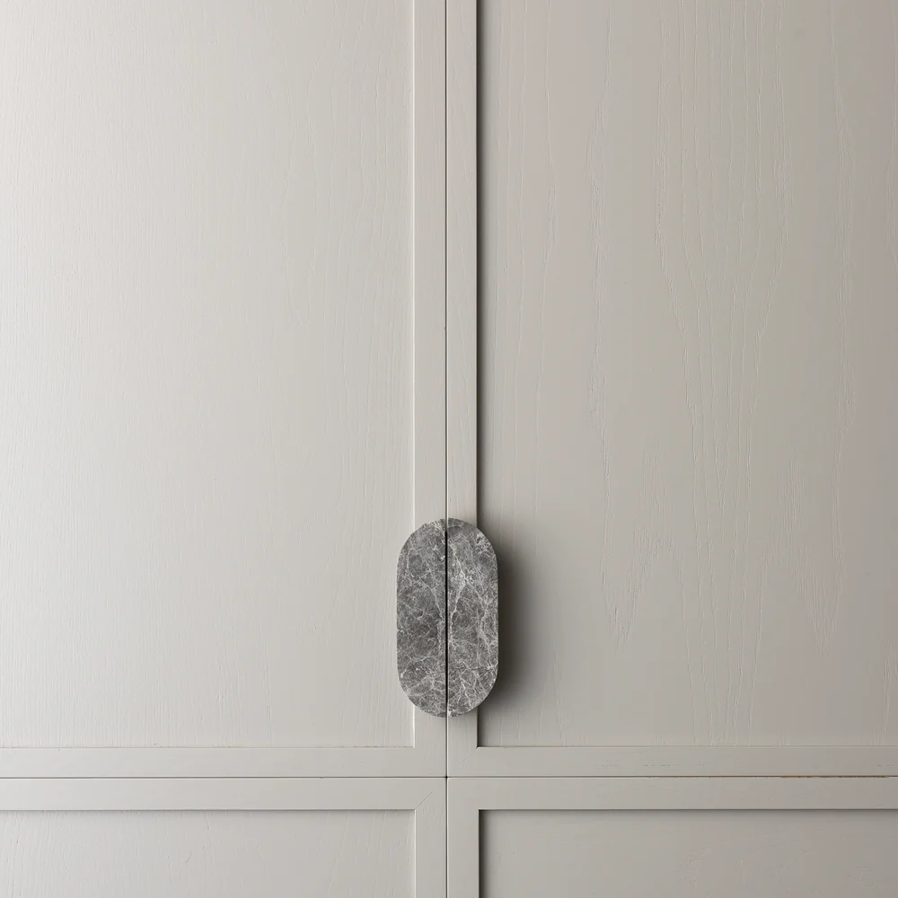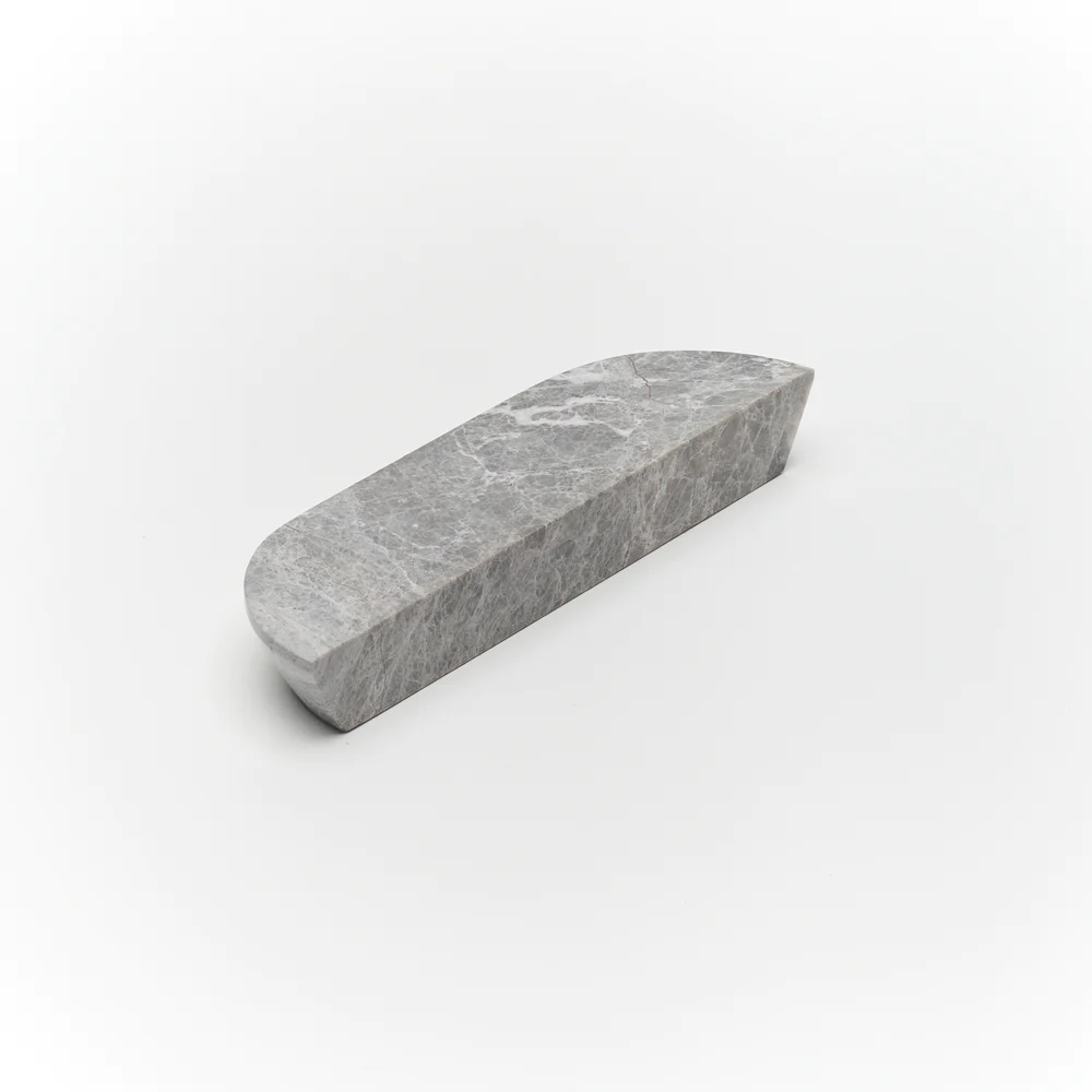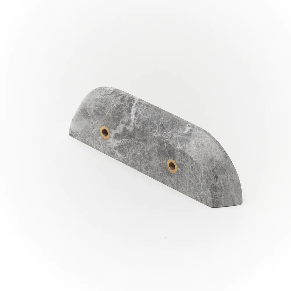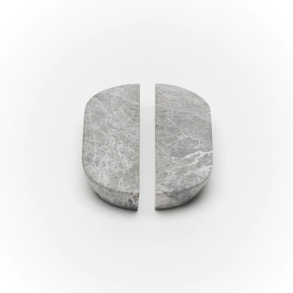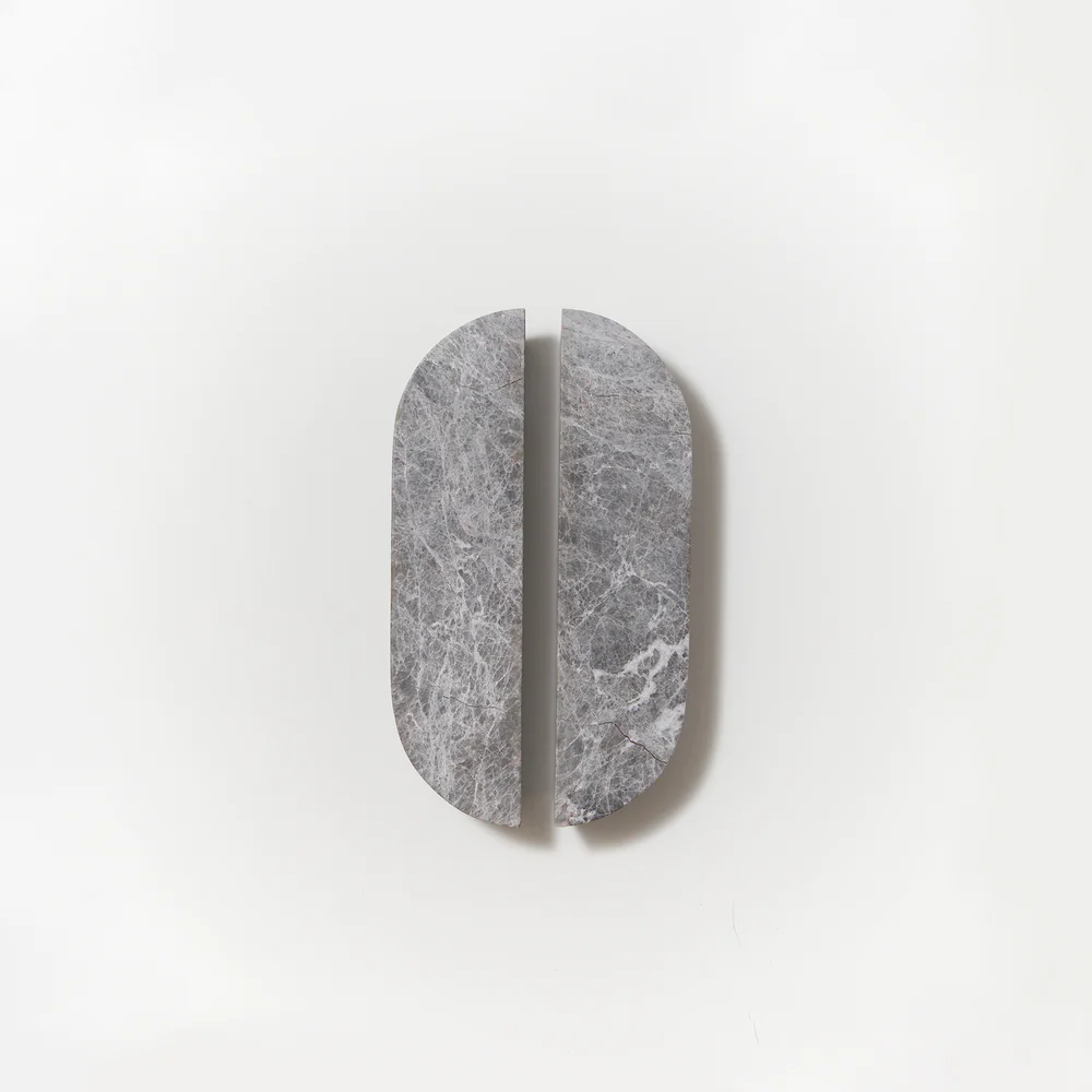 Dot Tundra Grey Marble Handle pair with a honed finish, measures 160mm long, 40mm wide and 20mm deep with natural arch shaped ends and angle sides for perfect pulling power. Comes with mounting hardware. These stunning handles are crafted from natural marble and therefore their veining is irregular and adds to the beauty of this product.