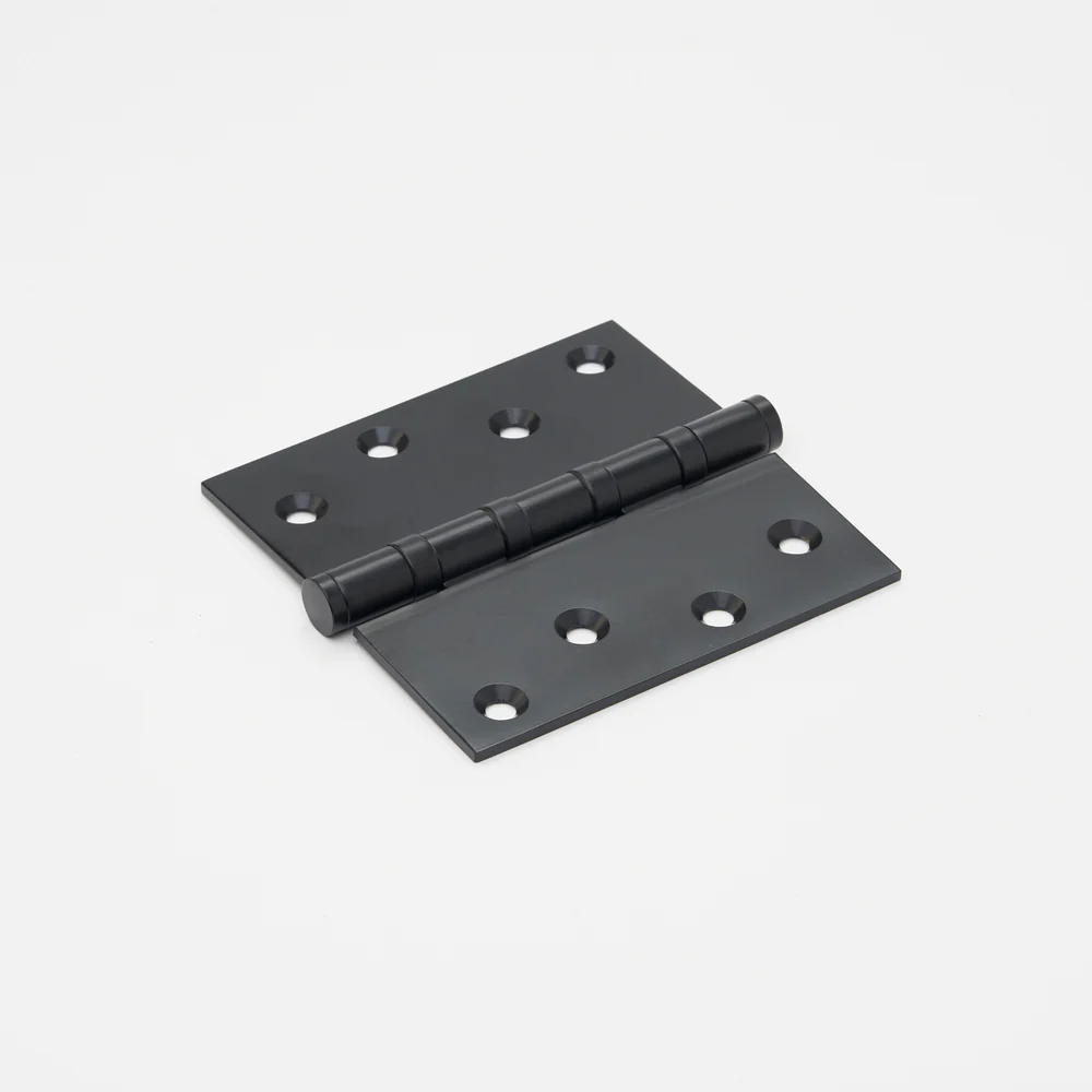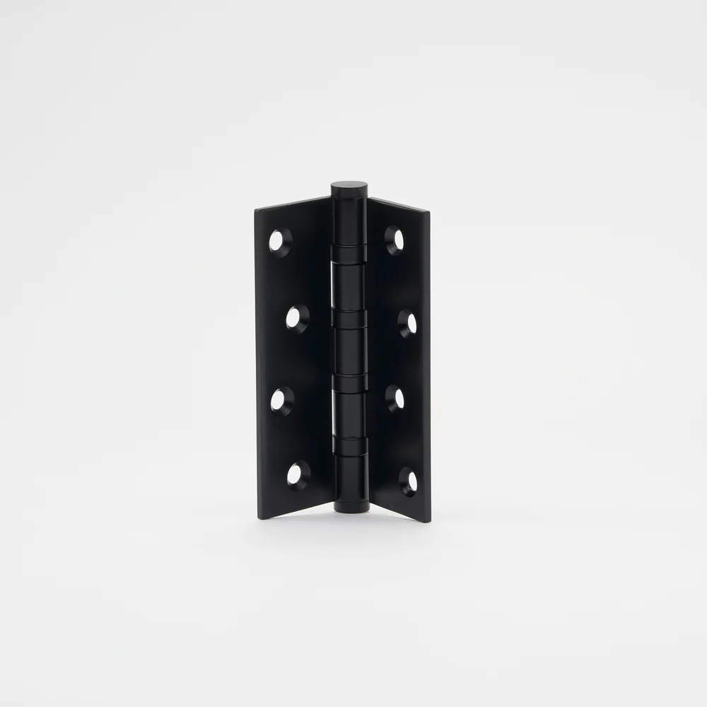 Traditional fixed pin, ball-bearing hinge design made from solid brass and electroplated in matte black.