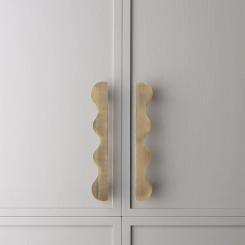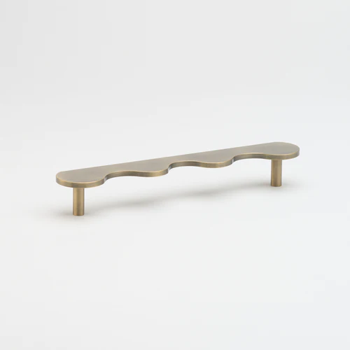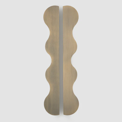 The Karu Pull, created in collaboration with Folk Studio, is a bold and distinctive sculptural design. A unique shaped wave profile, embodying soft contours and arched form. These curvaceous handles come in three sizes, 120mm, 240mm and 350mm and are designed to make an impact! Solid brass with an electroplated aged brass finish.