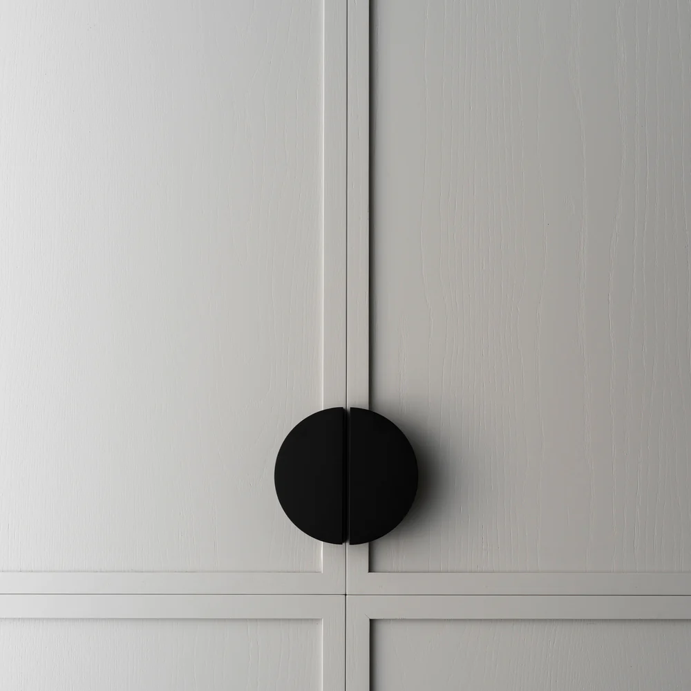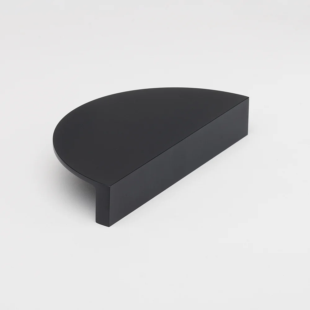 Solid brass Luna Pull XL with an electroplated matte black finish. This stunning half moon pull is the perfect selection for doors and drawers, and can also be used as an appliance pull. Measures 75mm wide, 150mm tall, with a projection of 25mm.