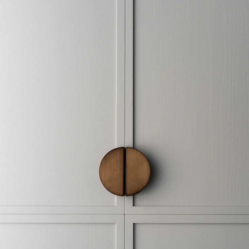 Solid brass Luna Pull XL with an electroplated brushed bronze finish. This stunning half moon pull is the perfect selection for doors and drawers, and can also be used as an appliance pull. Measures 75mm wide, 150mm tall, with a projection of 25mm.