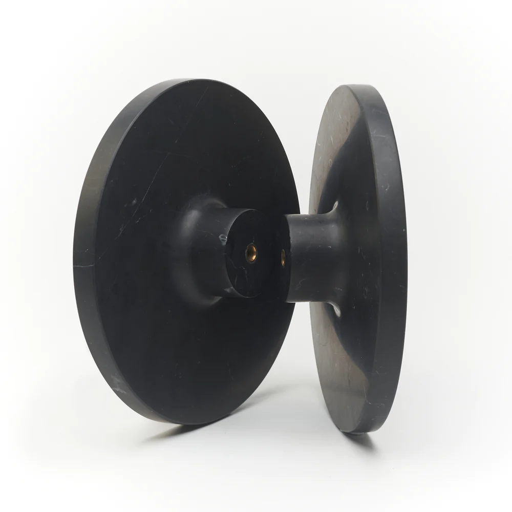 A show-stopping oversized circular back to back entry pull, crafted in solid Black Marquina Marble, with a honed finish. Measures 200mm wide with a 50mm projection.