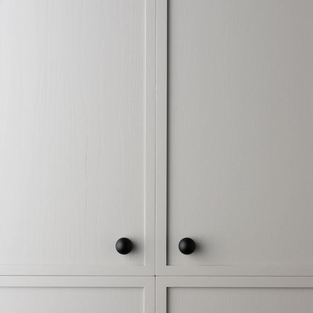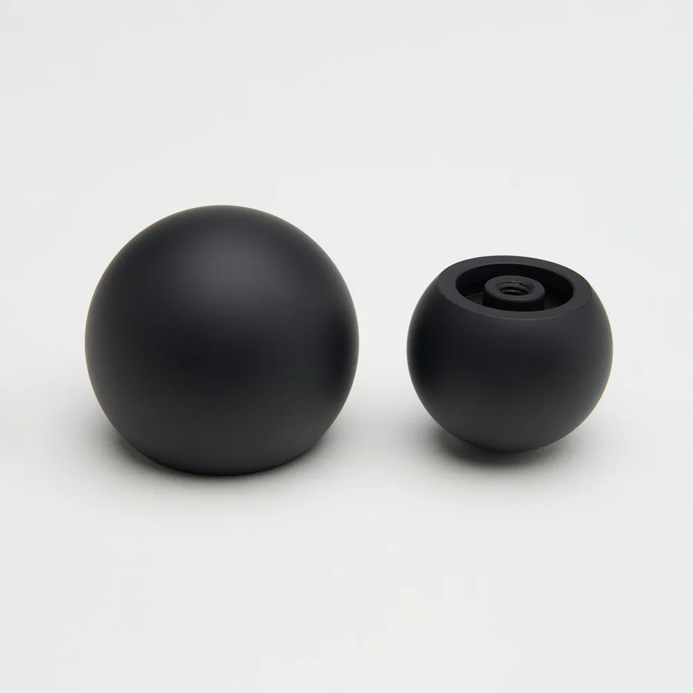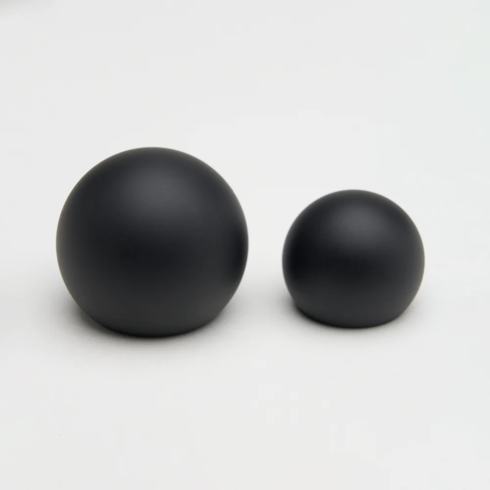 Achieve elevated sophistication with these solid brass spherical cabinet knobs with circular grain detail. Available in two sizes, 30mm and 40mm each with a 45mm projection. Refined and elegant. Pair these knobs with our Sphere Pull range for dramatic effect! Solid brass with a black electroplated finish.