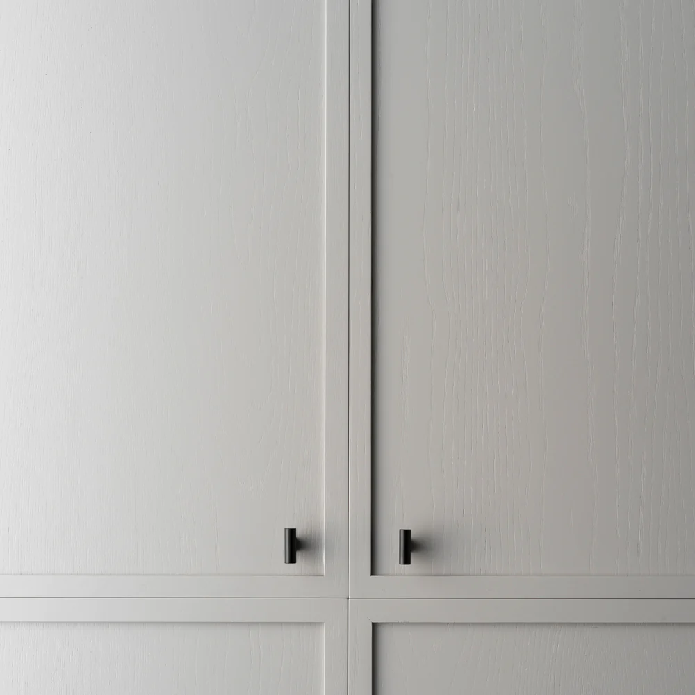 Solid brass T Pull Handle with an electroplated matte black finish. Total length is 38mm, projection is 32mm and diameter is 12mm. Comes with mounting hardware.