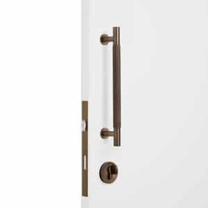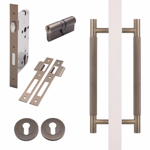 Our Roller Lock Kit with Charmian pull combines all the parts needed to create a stunning and functional entry door. The solid brass back-to-back entry pull is an aesthetic feature for any entry door, with sizes to suit doors both large and small.