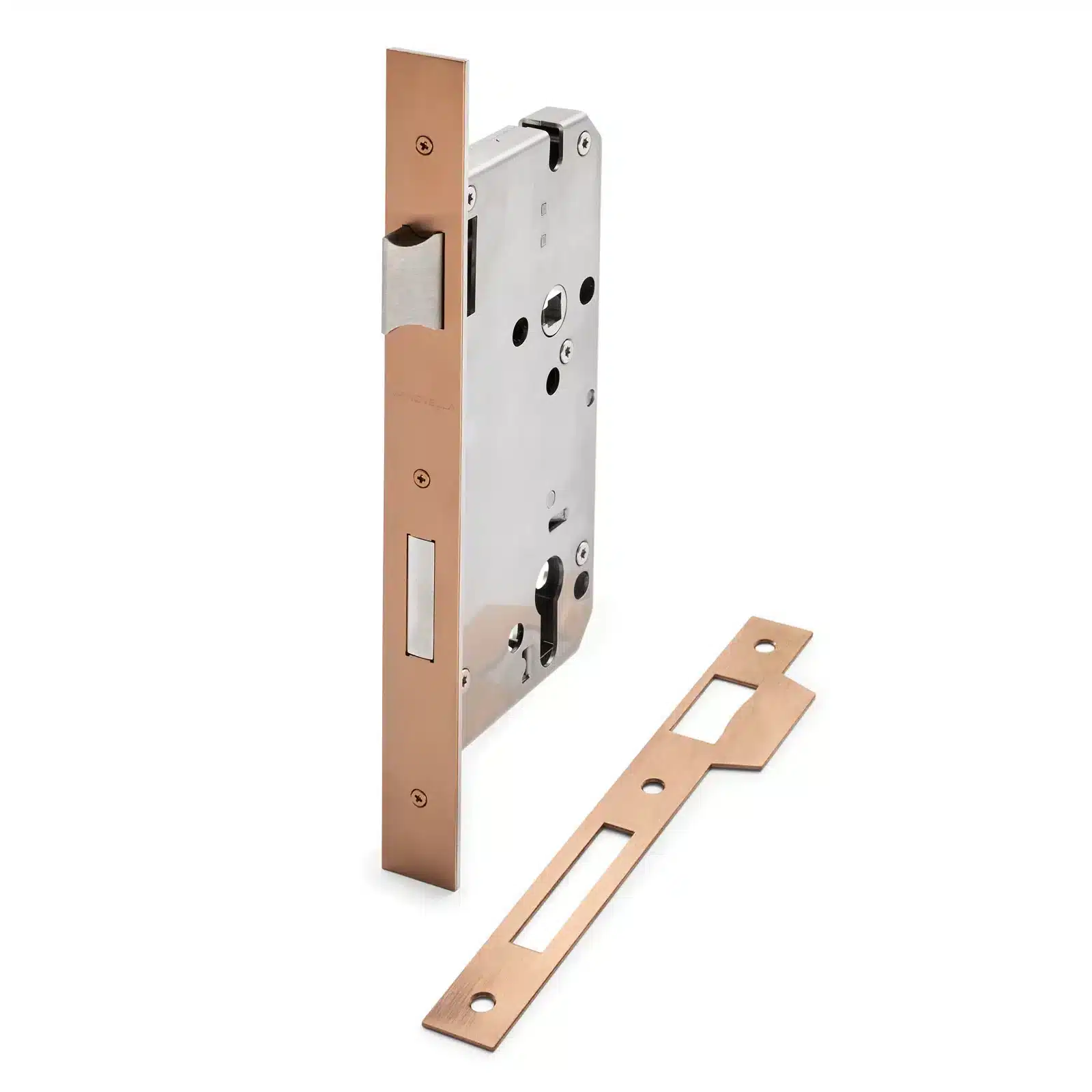 Manovella Brushed Copper Euro Mortice Lock 316SSS (85mm Pitch 60mm Backset)