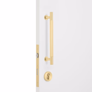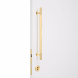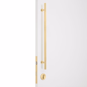 Our Roller Lock Kit with Charmian pull combines all the parts needed to create a stunning and functional entry door. The solid brass back-to-back entry pull is an aesthetic feature for any entry door, with sizes to suit doors both large and small.