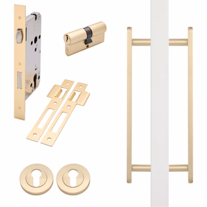 Our Roller Lock Kit with Imogen pull combines all the parts needed to create a stunning and functional entry door. The solid brass back-to-back entry pull is an aesthetic feature for any entry door, with sizes to suit doors both large and small.