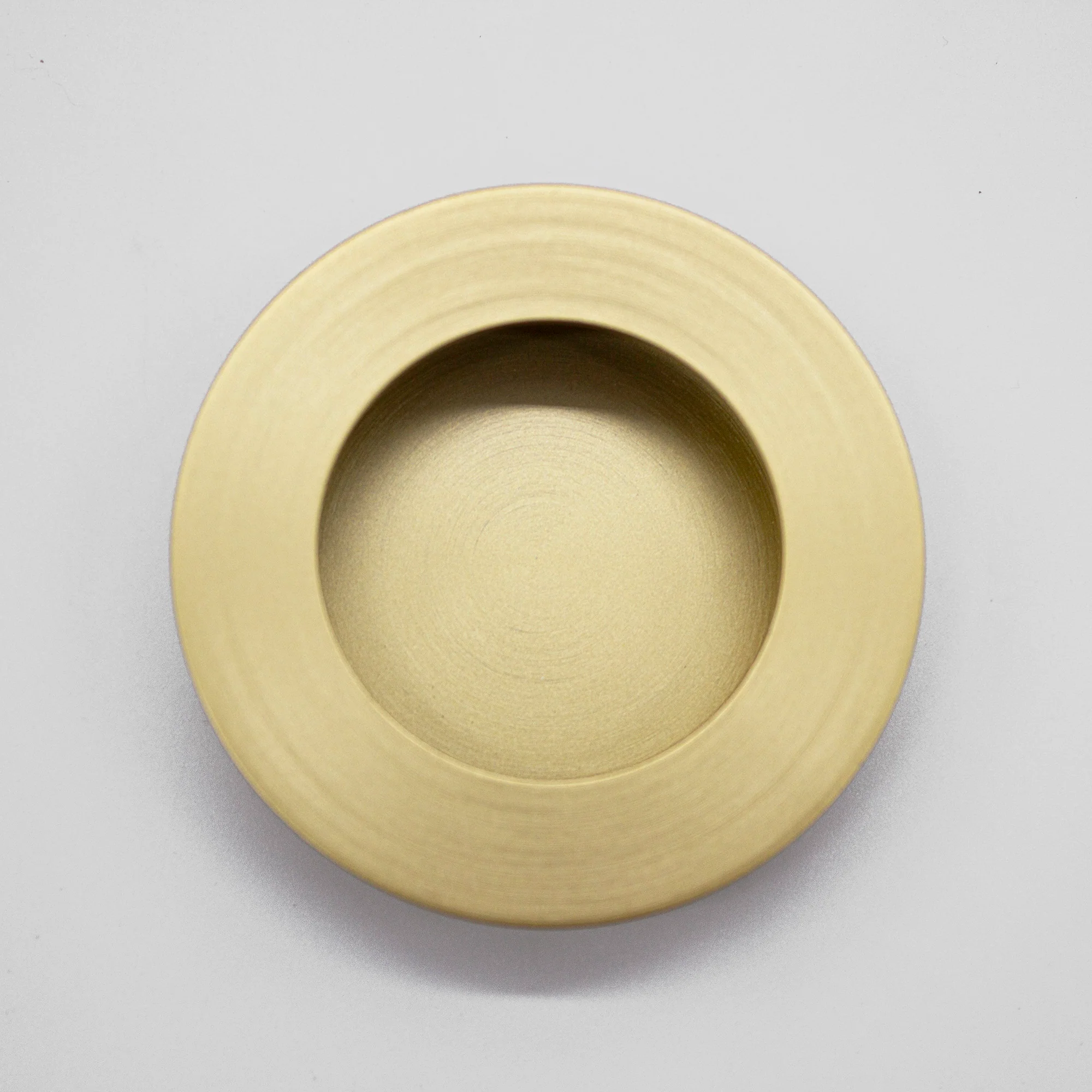 Manovella Satin Brass Sliding Door Round Flush Pull 65mm