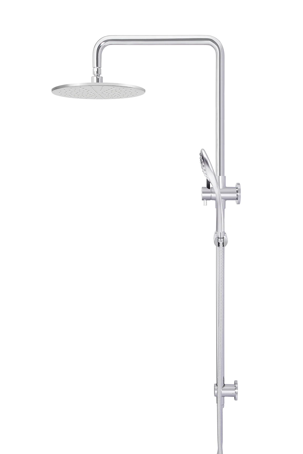 MEIR ROUND COMBINATION SHOWER RAIL 300MM ROSE, THREE FUNCTION HAND SHOWER – polished chrome