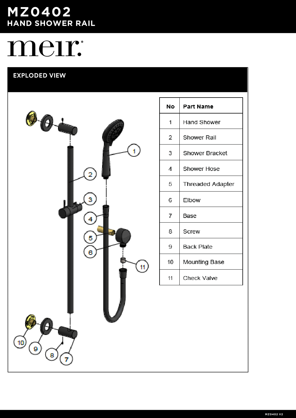 MEIR ROUND THREE FUNCTION HAND SHOWER ON RAIL COLUMN – champagne