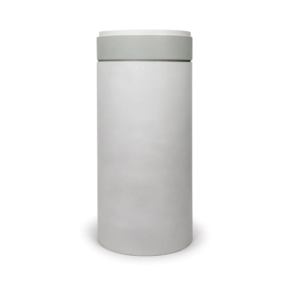 This unique piece, stands proudly in our bathroom in cylinder form, featuring a Stepp Circle Basin (two tone) on top. This all concrete pedestal is a modern day modular design—meaning you get to choose the colour of the basin, cylinder, and tray if you want one. Each piece is available in all 14 colours. Enjoy.