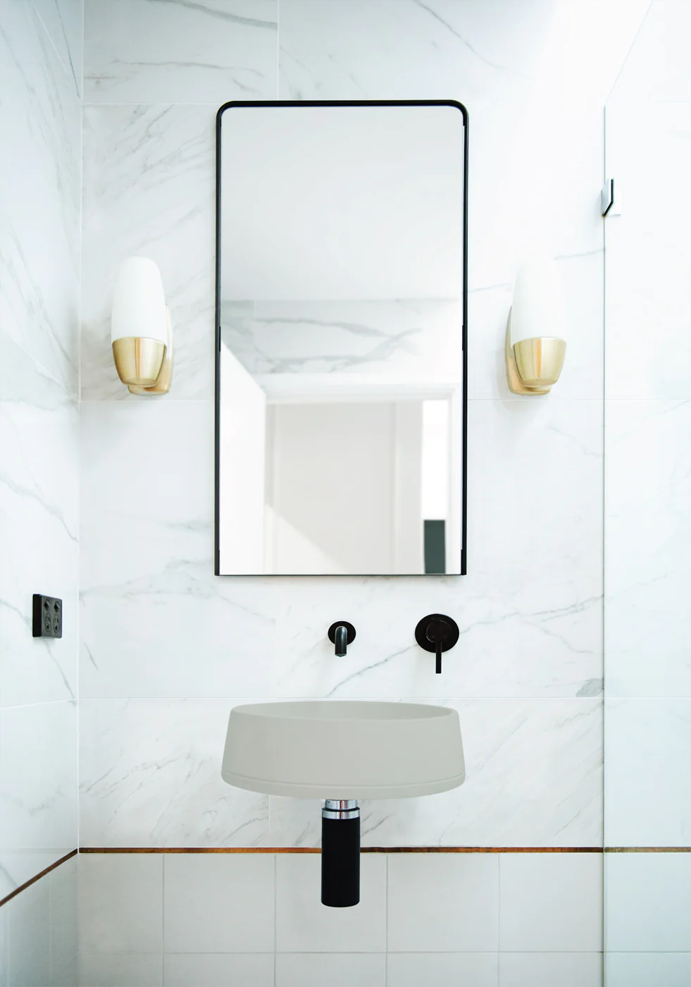 The Funl wall hung concrete basin has gorgeous angled walls that funnel down to a squared base to create an elegant bathroom masterpiece. Enjoy a refined, clean setting with Nood’s unique hidden bracket system.