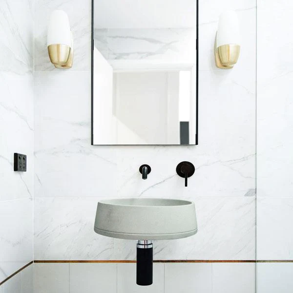 The Funl wall hung concrete basin has gorgeous angled walls that funnel down to a squared base to create an elegant bathroom masterpiece. Enjoy a refined, clean setting with Nood’s unique hidden bracket system.