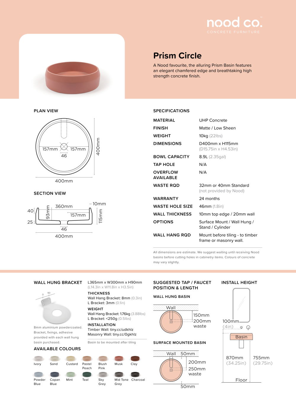 A Nood favourite, the alluring Prism Basin features an elegant chamfered edge and breathtaking high strength concrete finish.