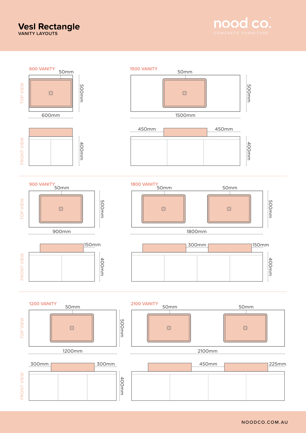 Waste: Suits a standard 32mm (1�in) waste. Waste not supplied by Nood Co.