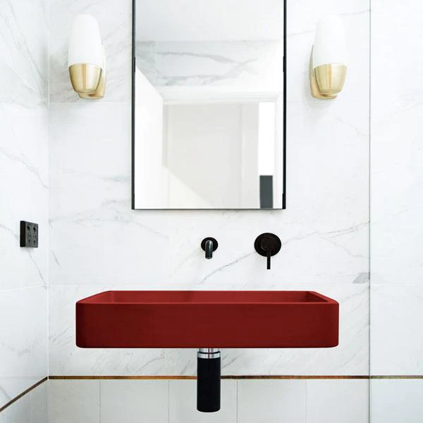 With contemporary curves and refined edges, the Vesl Rectangle ushers in a new standard in high strength concrete basins for designers to engage. Enjoy a refined, clean setting with Nood’s unique hidden bracket system.