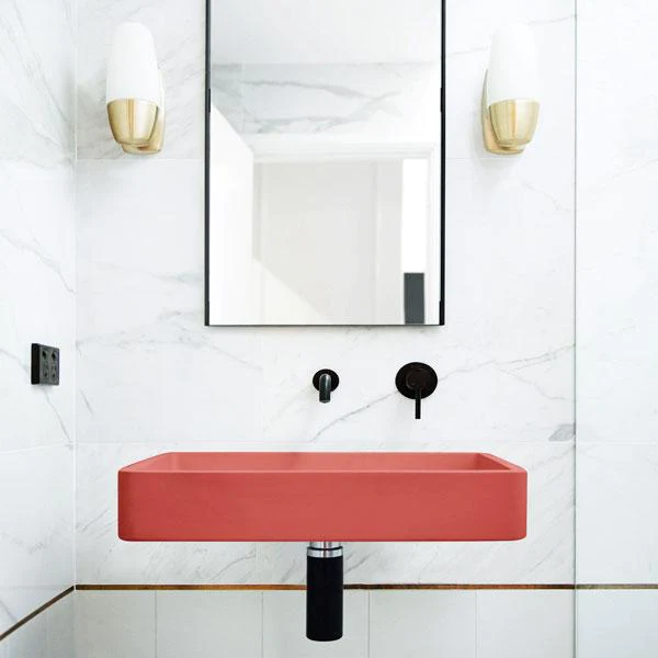 With contemporary curves and refined edges, the Vesl Rectangle ushers in a new standard in high strength concrete basins for designers to engage. Enjoy a refined, clean setting with Nood’s unique hidden bracket system.