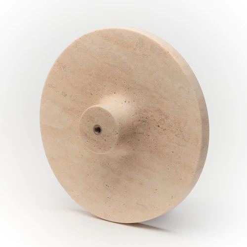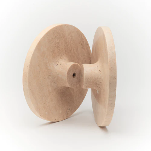 A show-stopping oversized circular back to back entry pull, crafted in solid Travertine, with a honed finish. Measures 200mm wide with a 50mm projection.
