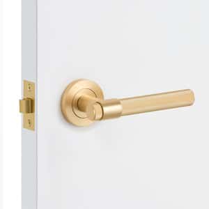 Manovella Satin Brass Knurled Passage Door Handle – Rosedale ( solid Brass )