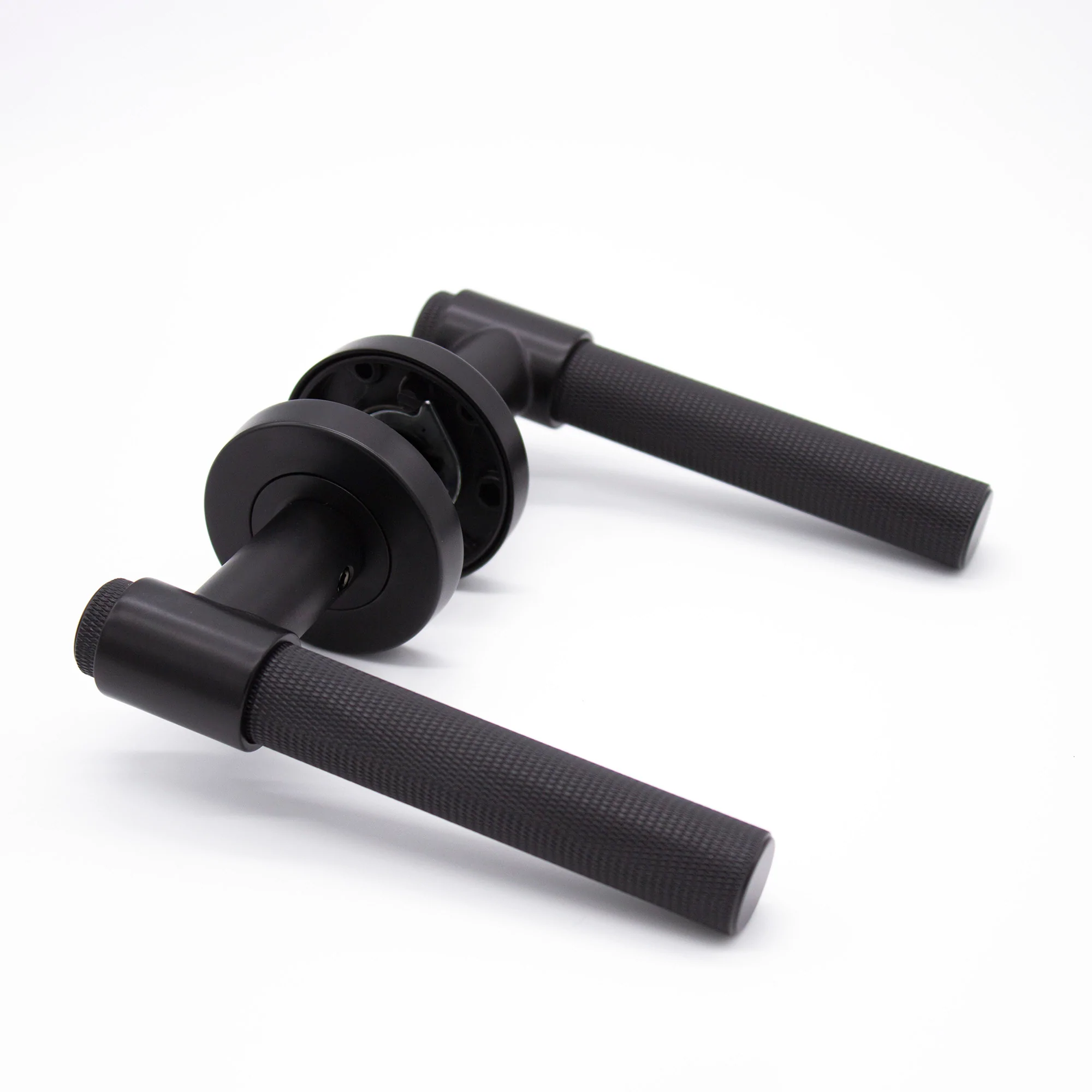 Offering a premium textured design and solid brass construction, the Rosedale passage lever set in matt black is the ultimate luxury for internal door furniture. With ‘soft to the touch’ knurling designed to compliment our Charmian cabinet range, the pure ‘lux’ feel is sure to impressĀ in every way. Backed by our 10 year mechanical guarantee, the Rosedale is complete with lever set, latch, and all fixings required to make your installation as easy as possible – just like the rest of our range.