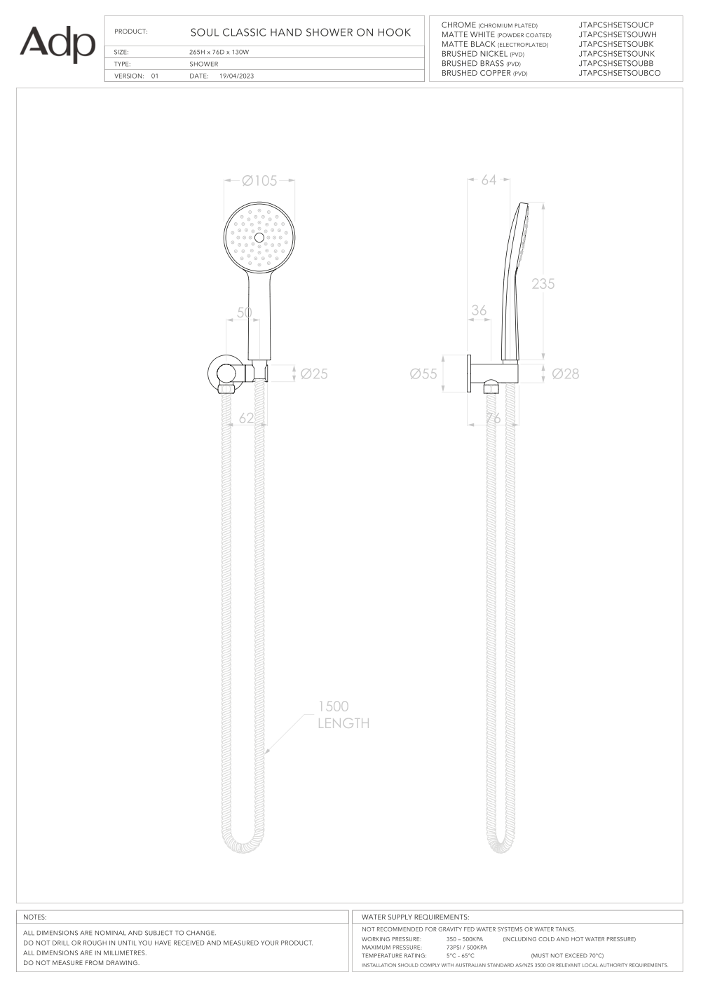 ADP Soul Classic Hand Shower On Hook – Brushed Brass