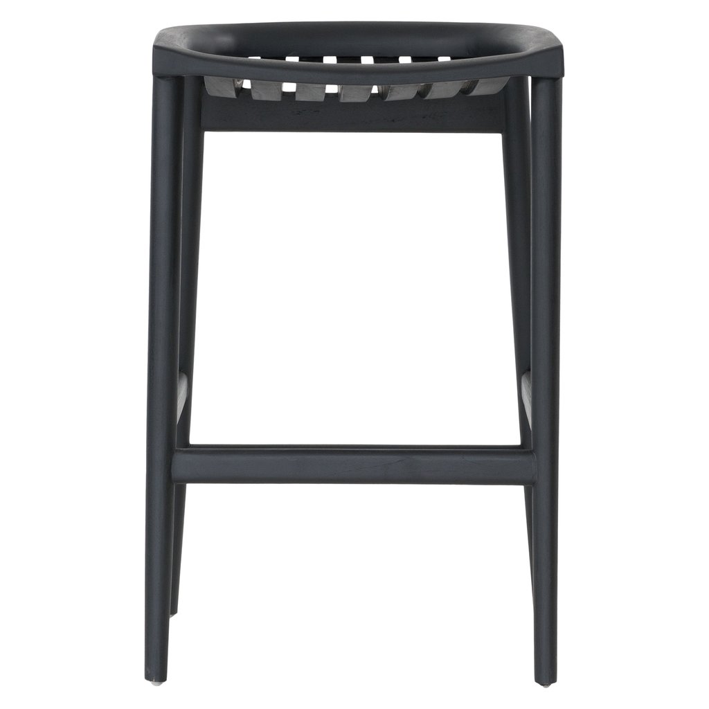 With a combination of gently scooped broad slats, and mid-century design , the Tarkuli Barstool showcases teak in a classic way. Finished in black.
